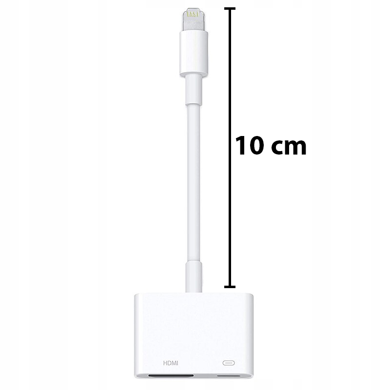 Адаптер з роз'ємом блискавки для цифрового AV дозволяє дублювати зображення з нашого пристрою в якості HD на екрані телевізора, дисплея, проектора чи іншого пристрою, який має HDMI. Слід пам’ятати, що для належної роботи адаптера він повинен бути підключений до джерела живлення.