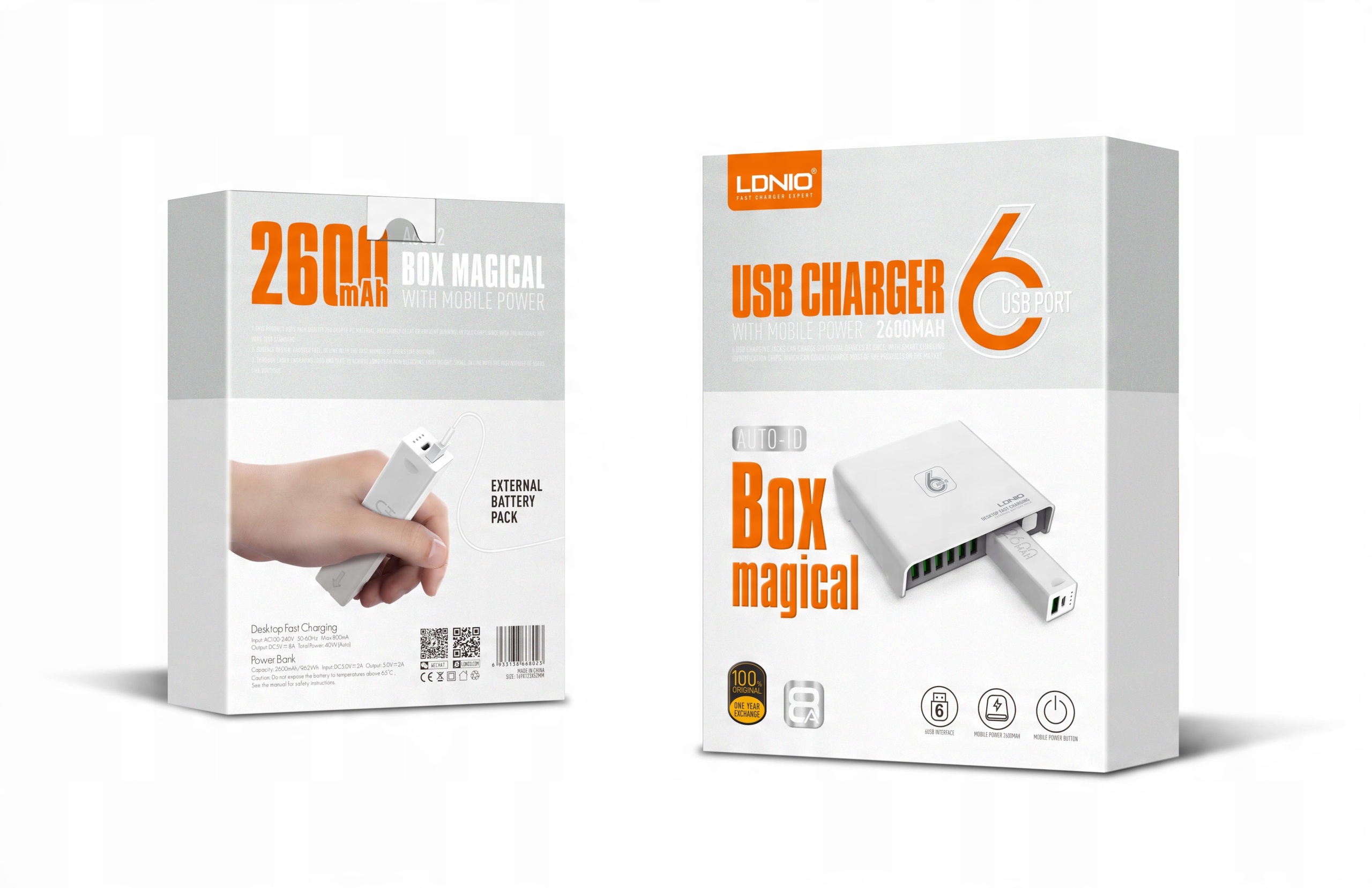 Коротко: мультимережевий зарядний пристрій 6xUSB + POWERBANK 2600mAh:
