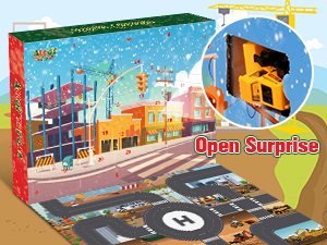[24 сюрпризи]: Адвент-календар на 2022 рік включає 13 різних типів міських автомобілів, 2 літаки, 6 наборів дорожніх аксесуарів (гідранти, конуси, барикади, дорожні знаки), 2 аксесуари для баштових кранів і 1 піддон.