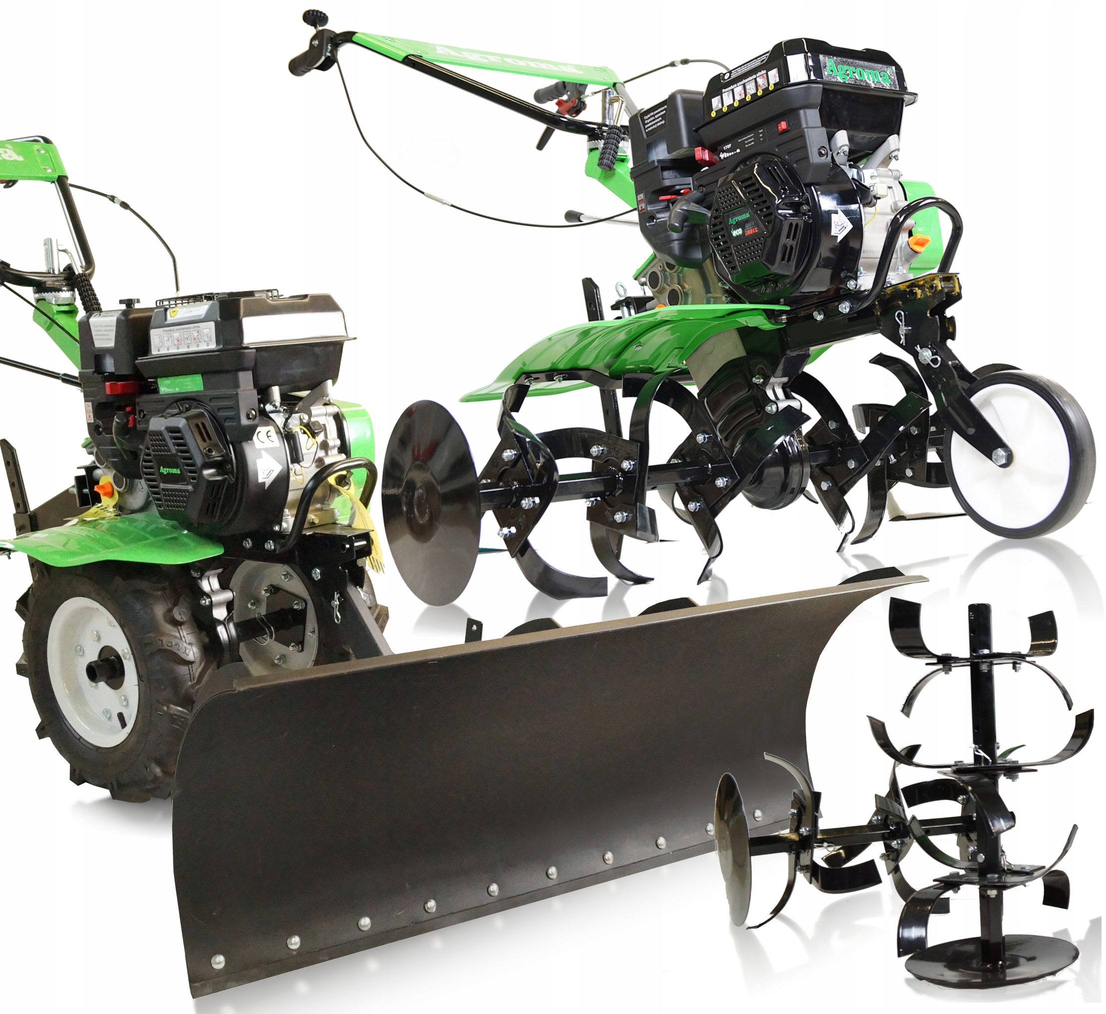 Оснащена професійним двигуном потужністю до 7 к.с.. Велика робоча ширина, міцний механізм і коробка передач, професійне кріплення ножів і аксесуарів роблять модель T7080L3G виключноміцною і дуже ефективною. Бензинова фреза AGROMA T7080L3G - потужна машина, призначена для роботи в середніх і великих садах, а також в садівничих компаніях. Апарат також має можливість зміни робочої ширини в діапазоні 70-80-112см, задню передачу і регульовану рукоятку в двох площинах, що значно полегшує роботу. Ідеально видаляє бур'яни та аерує ґрунт. Виробник додатково подбав про можливість підключення аксесуарів для виконання різноманітних польових робіт. Висока потужність і сильне передавальне число можуть легко впоратися навіть із найтвердішим ґрунтом.