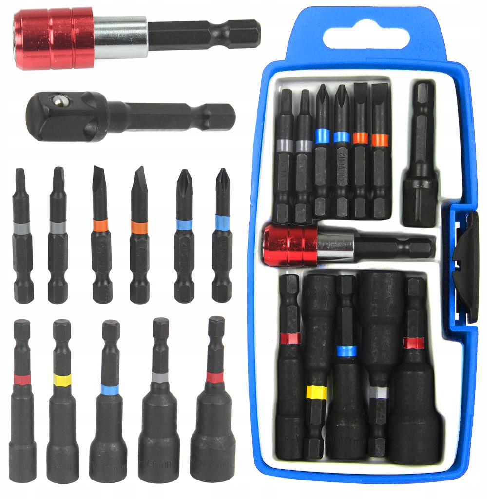 Набір біт і головок із високоякісної сталі CrV, що гарантує дуже високу якість.