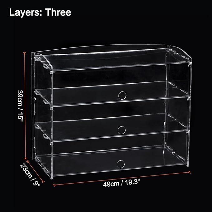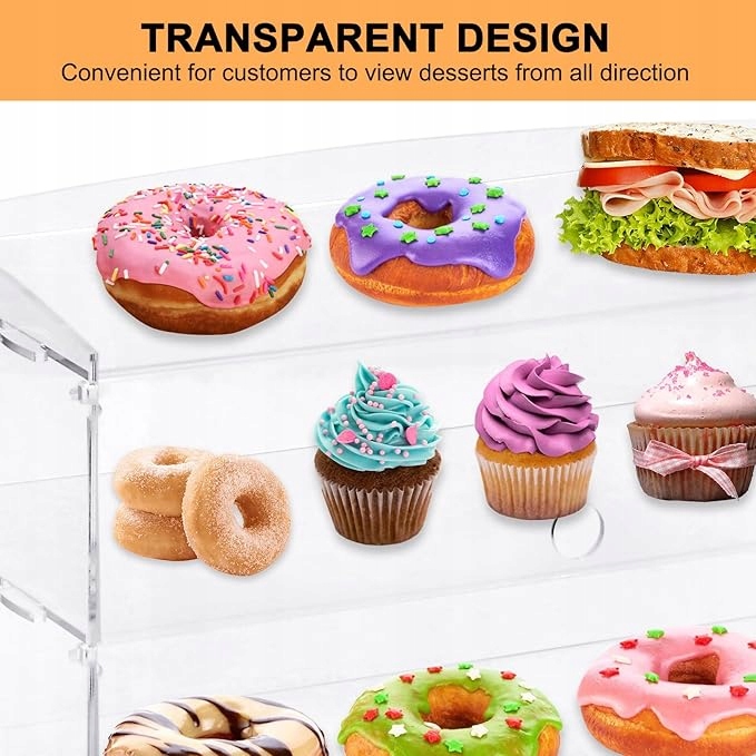 - Видимість - прозорий акриловий матеріал забезпечує хорошу видимість речей всередині і може відображати різні продукти, такі як торти, хліб, бутерброди або предмети колектора для дому, такі як статуетки, моделі, косметика та багато інших. Якщо ви покладете його в пекарню або в закусочний, він приверне увагу у вашому магазині.