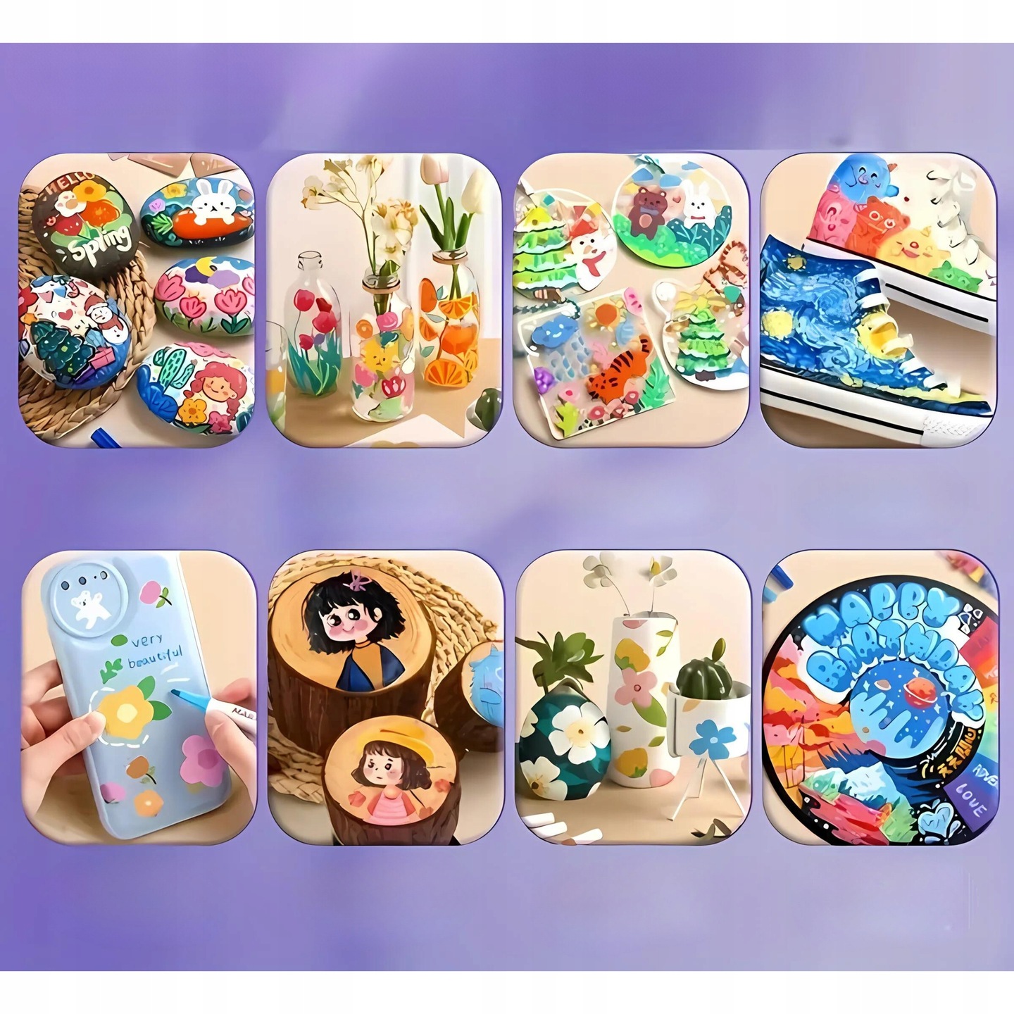 ➡ Набір з 12 акрилових маркерів - чудовий вибір для художників та ентузіастів "Зроби сам". Завдяки водонепроникній формулі ці маркери працюватимуть ідеально на різних поверхнях.