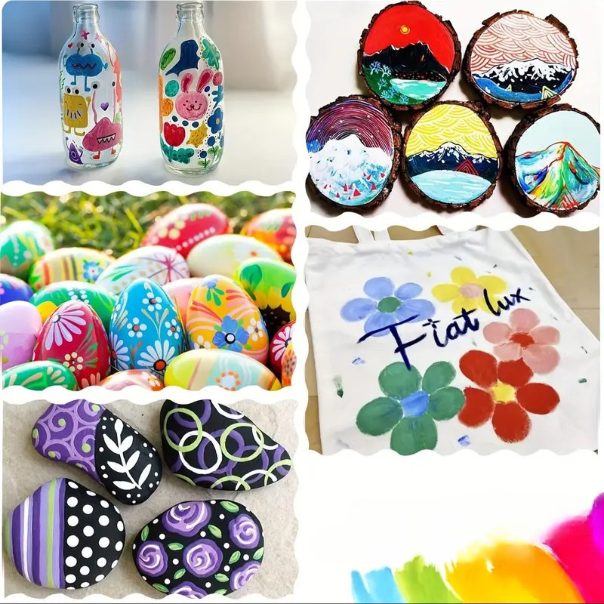 ✅ водонепроникний та довговічний - акрилова фарба швидко висихає, не в’яне і стійка до води та стирання. Вони ідеально підходять для фарбування деревини, пластику, скла, металу, кераміки, тканин, каменів та паперу .