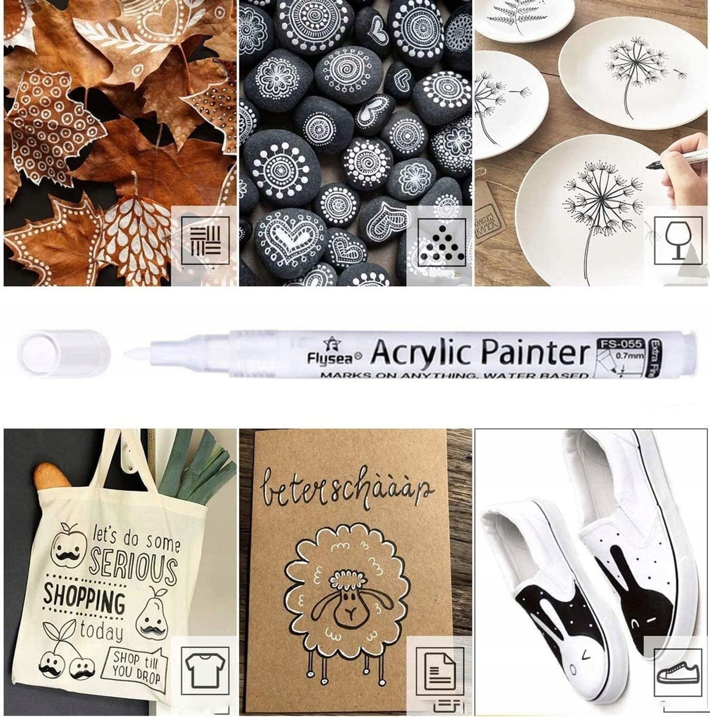 ⭐ne, що ви не знайдете інструменту для малювання, який буде працювати в різних матеріалах і працюватиме добре під час створення? Цей набір з 8 чорно-білих акрилових маркерів з товщиною 0,7 мм (4 білого та 4 чорного кольору) має суміш, що швидко висихає, на основі води з високим покриттям пігментів, точним контролем ручки без розмиття та легко копіюється з матеріалами, такими як папір, камінь, скло та метал, щоб кожна щітка була відкрита. Творчість!