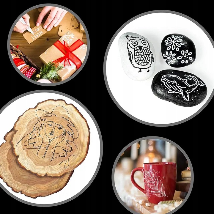 ⭐ ⭐ Виробництво ремесел: використовується для фарбування каменів, прикраси писанок, створення персоналізованих стендів, обробки старого одягу та інших ремесел. Чорно -білі кольори дають творам унікальний, мистецький персонаж, що сприяє створенню унікальних, творчих творів;