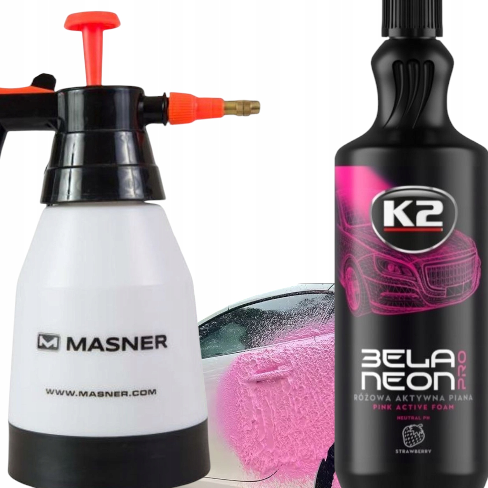 Якщо ви шукаєте ефективний набір попереднього промивання всієї поверхні автомобіля, встановіть poam 1l + k2 bela neon pro 1l Це ідеальне рішення! Завдяки цьому ви отримаєте щільну, активну піну з інтенсивним, рожевим кольором і приємним запахом полуниці.