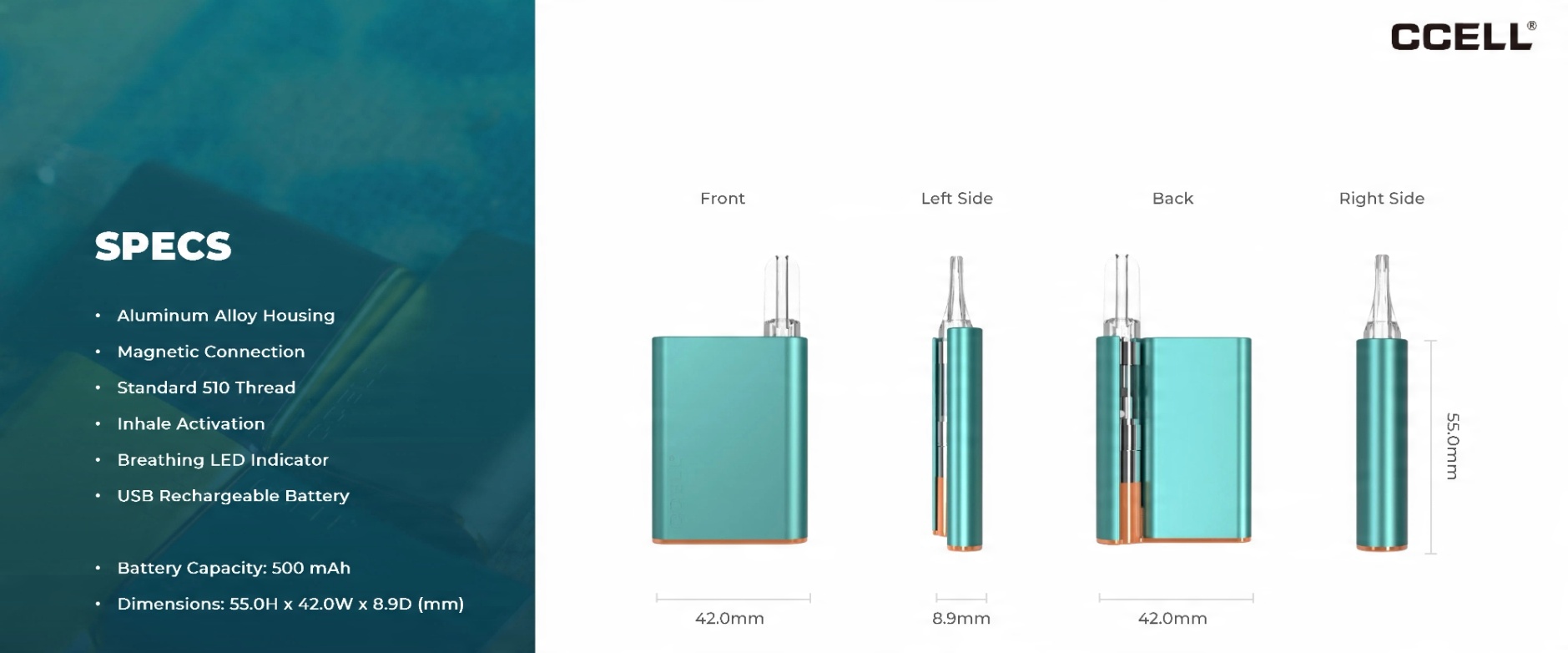 Акумулятор CCELL PALM PREMIUM портативний випарник 500mAh нитка 510 desylate