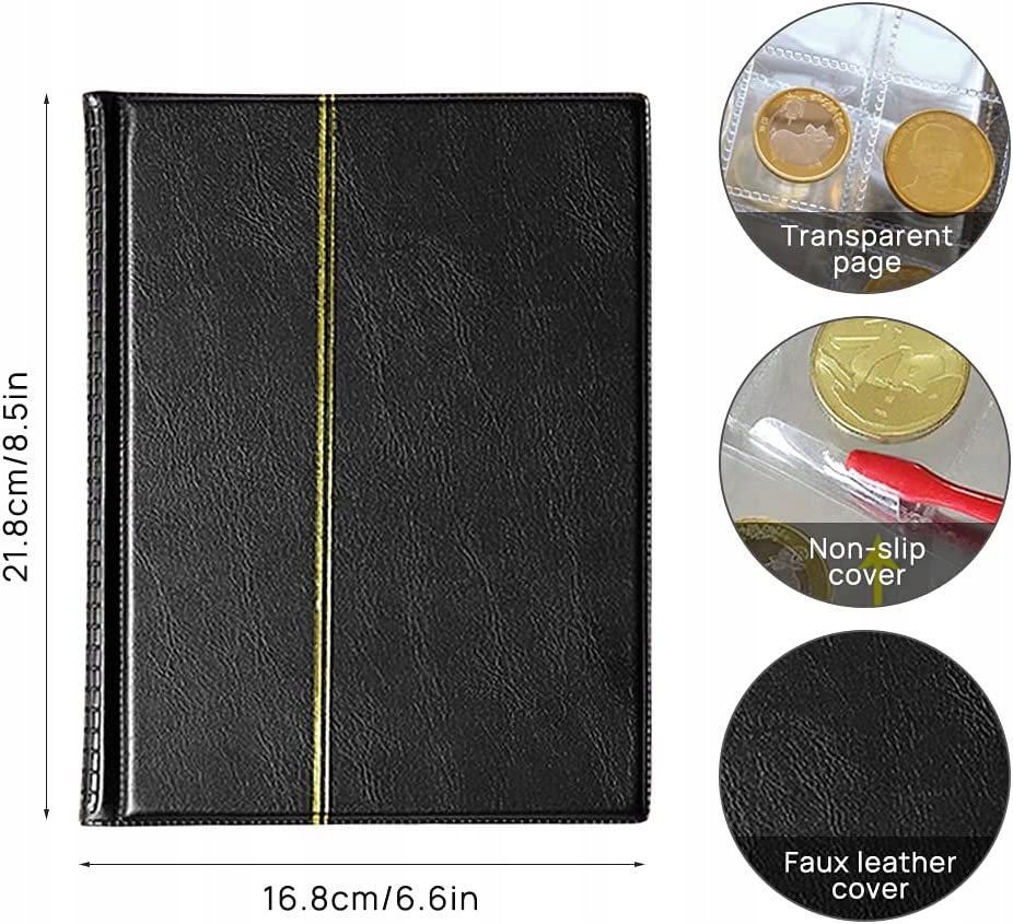 - 💎- Цей альбом для монет має 10 сторінок і 250 відсіків у 2 розмірах, що містять монети до 3,5 см в діаметрі.