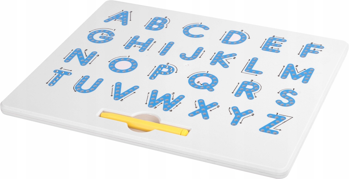 сенсаційна іграшка для дітей з 3 років . Завдяки цій навчальній дошці діти вивчать листи алфавіту написання на спеціальній дошці за допомогою металевих куль . На дошці поруч із листами є пронумеровані постріли , вони допоможуть вказати напрямок та порядок запису листів.