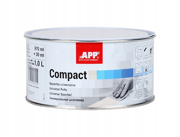 Compact App Compact -це два -компонент Швидкий -Suight , поліестер, що наповнює шпаклівкою із зменшенням ваги 1,0 кг/ дм. Дерево та бетон.