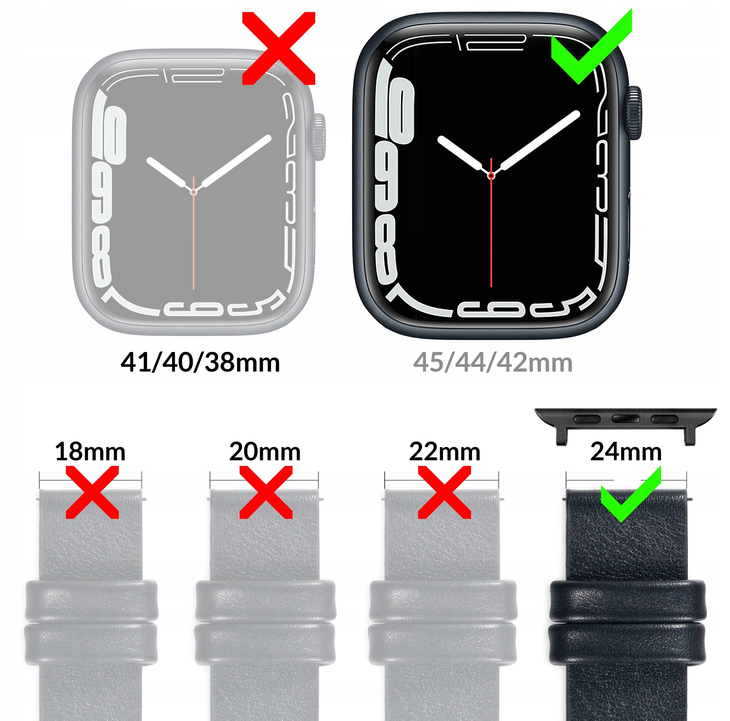 - Зверніть увагу на модель Apple Watch та розмір його конверта (49 мм, 45 мм, 44 мм, 42 мм, 41 мм, 40 мм, 38 мм). Розмір годинника важливий при виборі аксесуарів.
