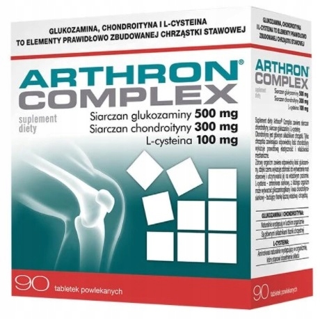 АРТРОН КОМПЛЕКС - добавка, призначена для людей, які ведуть активний спосіб життя, а також для всіх людей, які мають проблеми з суглобами. Він містить єдину на ринку таку комбінацію глюкозаміну та хондроїтину в оптимальних дозах. Крім того, він містить L-цистеїн. Хондроїтин є основним компонентом хряща. Глюкозамін є інгредієнтом, необхідним для правильної побудови хрящової тканини та синовіальної рідини, а L-цистеїн доповнює будівельні властивості глюкозаміну та хондроїтину.