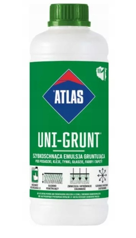 Atlas Uni-Grunt є просоченим для праймінгу, що виробляється на основі найвищої якості якості води в полімерних смолах. Він призначений для нанесення при підвищеній температурі, в межах від 5 ° С до 30 ° С, всередині та поза будівлями. Залежно від температурних умов та вологості повітря, застосування нових шарів на грунтованій поверхні можливе після: