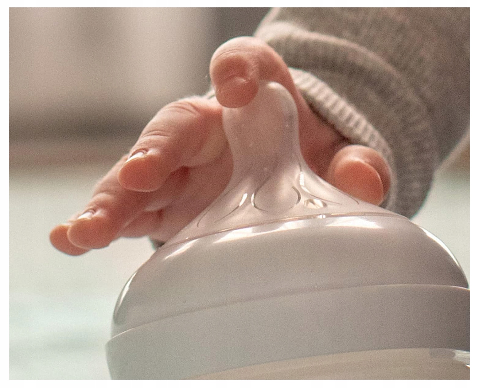Пляшка має спеціально розроблену соску, яка має форму та текстуру, що нагадує соску, що полегшує вашій дитині перехід від грудного вигодовування до пляшечки та навпаки.
