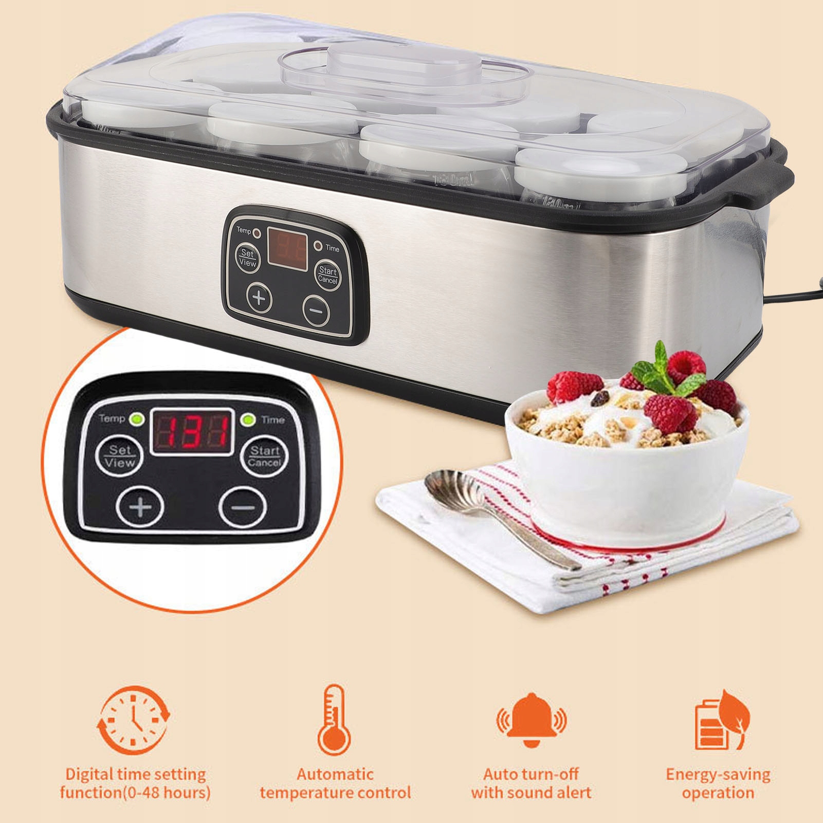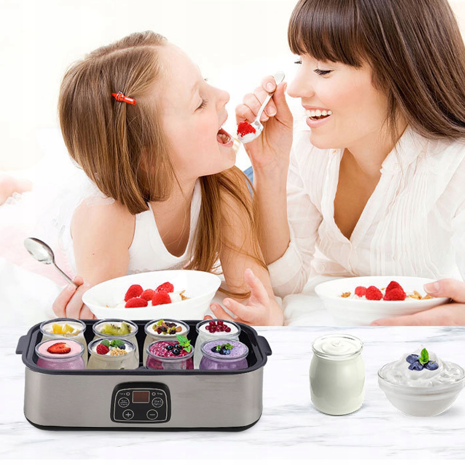 1. Легко ковзати: виробник йогурту оснащений РК -дисплеєм, автоматичним управлінням програм, автоматичним вибором та звуковою сигналізацією і може створювати йогурт без ручного нагляду. Зробіть йогурт дуже простим. Просто додайте йогурт до молока, добре перемішайте, запустіть машину, і ви можете насолоджуватися домашнім іогуртом для здоров'я