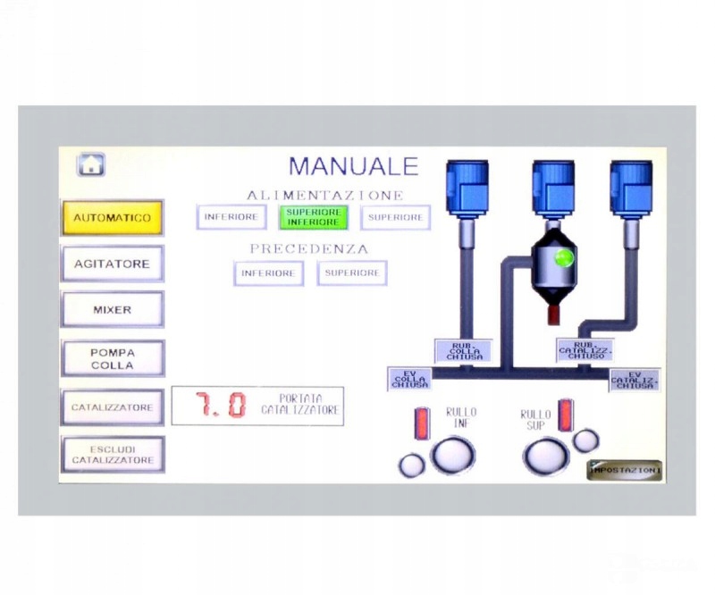 - Процес адміністрування встановлюється за допомогою контролера PLC, розміщеного на контрольному гардеробі, де ви також можете вибрати клей у верхніх або нижніх валиках або обидва одночасно.