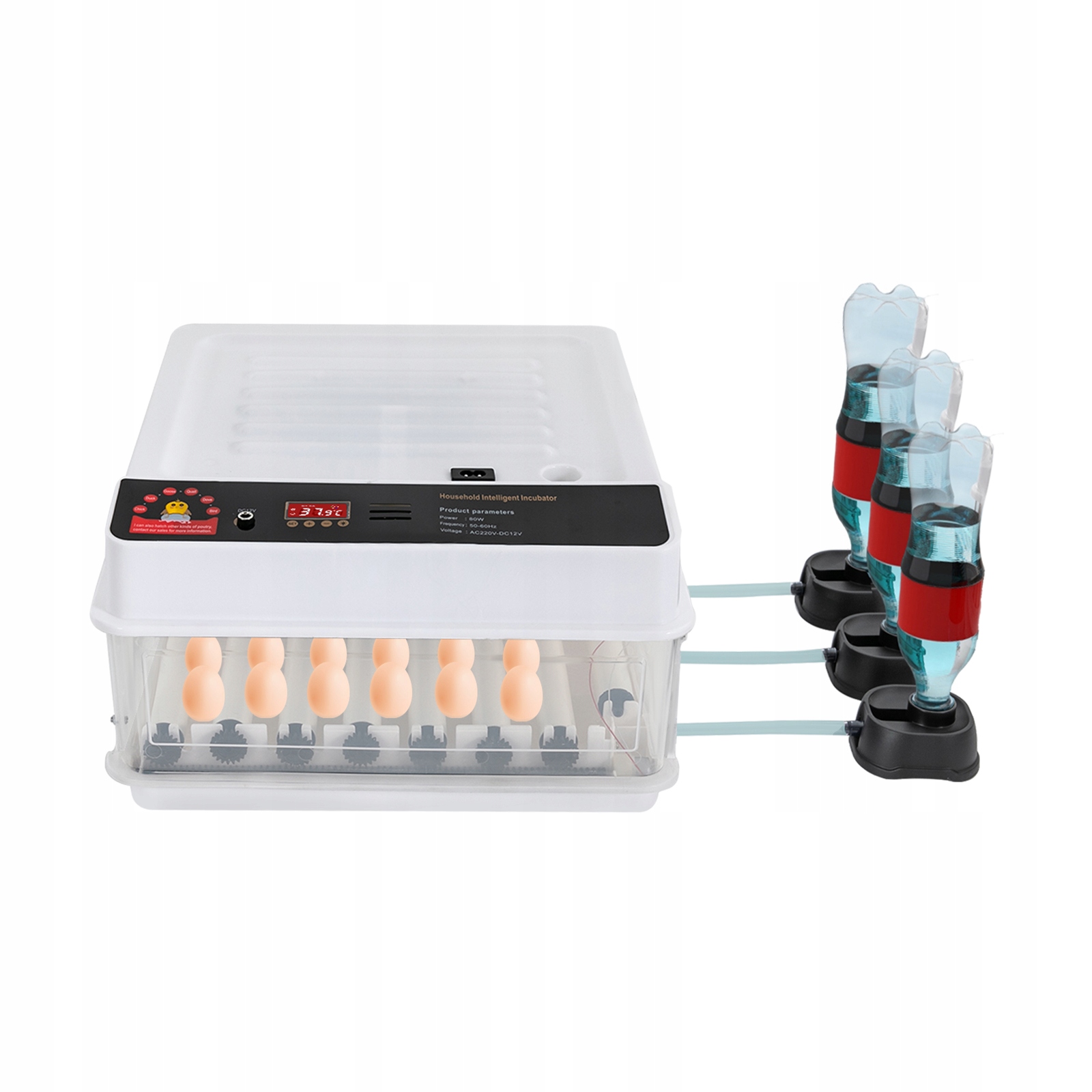 ✅ продуманий дизайн: Клавіші під екраном дисплея та змінюють вологість, регулюючи кількість пляшок на ваші потреби. Ви також можете використовувати акумулятор 12 В постійного струму, щоб живити його під час відключення електроенергії, не перериваючи процес інкубації.