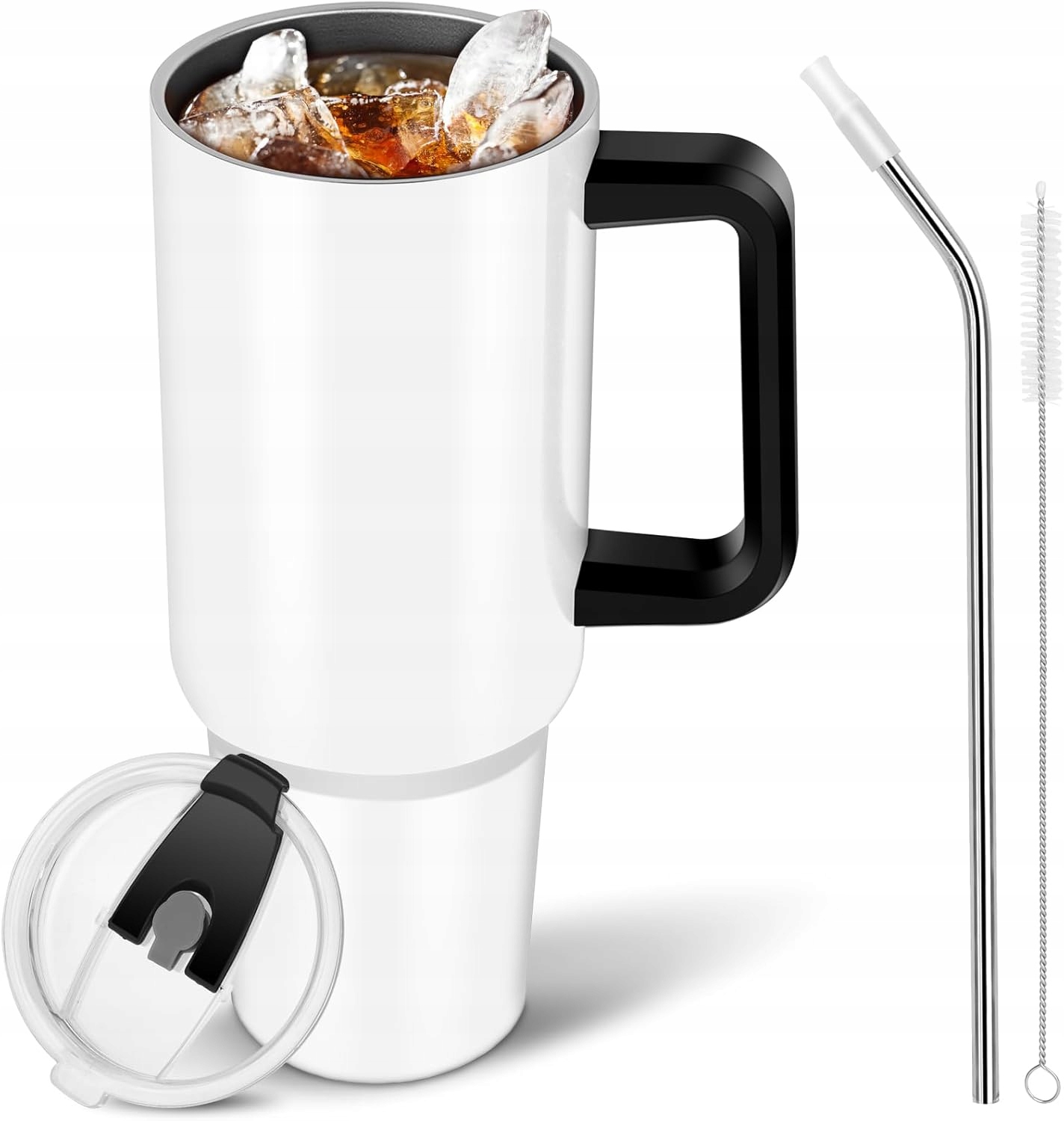 Термічна кухоль автомобіля з ручкою та трубою 1200 мл білих термос із соломою