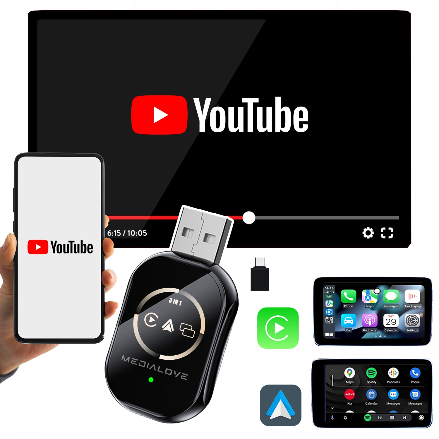 Автомобільне радіо Medialove з підтримкою Pendrive, бездротового Carplay, Android Auto та USB-C