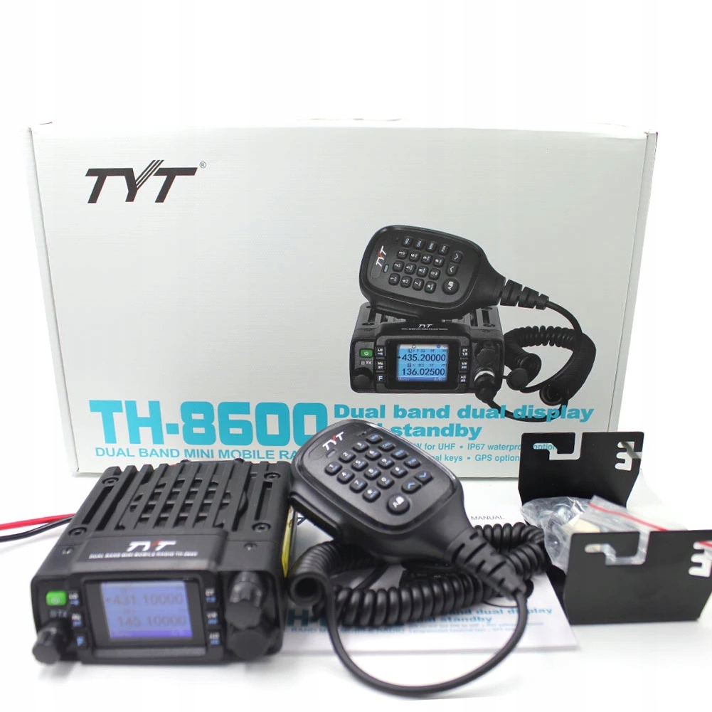 TYT TH-8600 Дуже міцний автомобільний дводіапазонний УКХ і УВЧ діапазон радіо, з потужністю передачі 25 і 20W. Призначений для роботи в автомобілі, квадроциклі або мотоциклі. TH-8600 має два VFO, що відображаються одночасно на панелі, щоб швидко інформувати оператора про роботу заданого діапазону. Сам РК-дисплей також має підсвічування, і підсвічування можна змінювати. TYT TH8600 невеликий, корпус є радіатором і не має примусового охолодження. Радіо TYT також підтримує коди 2T і 5T, а також CTCSS, DCS. TH-8600. Потужності радіотелефону TYT достатньо для встановлення зв'язку з кореспондентом, який знаходиться за десятки кілометрів.