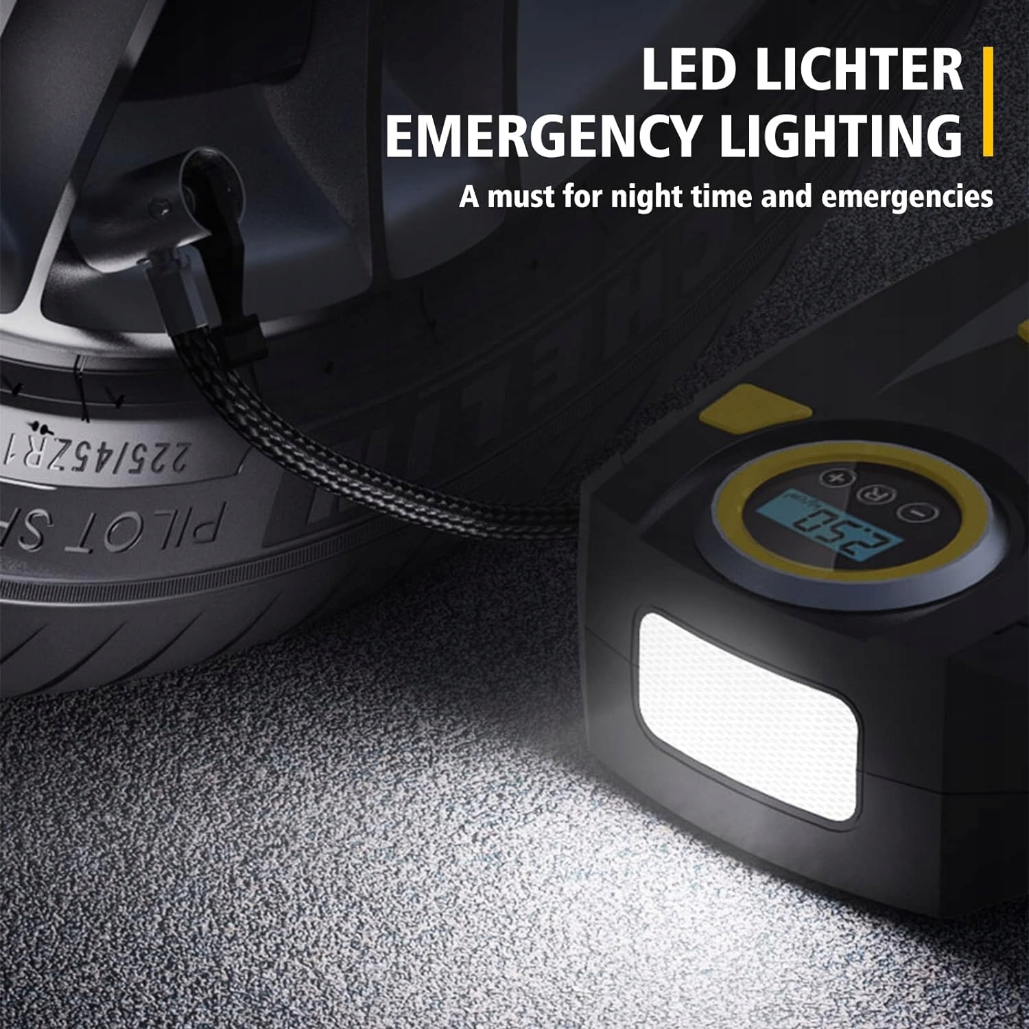 - "Світлодіодне та компактний дизайн" Інфатор шин оснащений світлодіодними вогнями та точним показником тиску, який допоможе вам бути готовим до нічних надзвичайних ситуацій. У поєднанні з кабелем, що працює на 11,5 футів, як на передній, так і на задній шині буде повністю зайнятий.