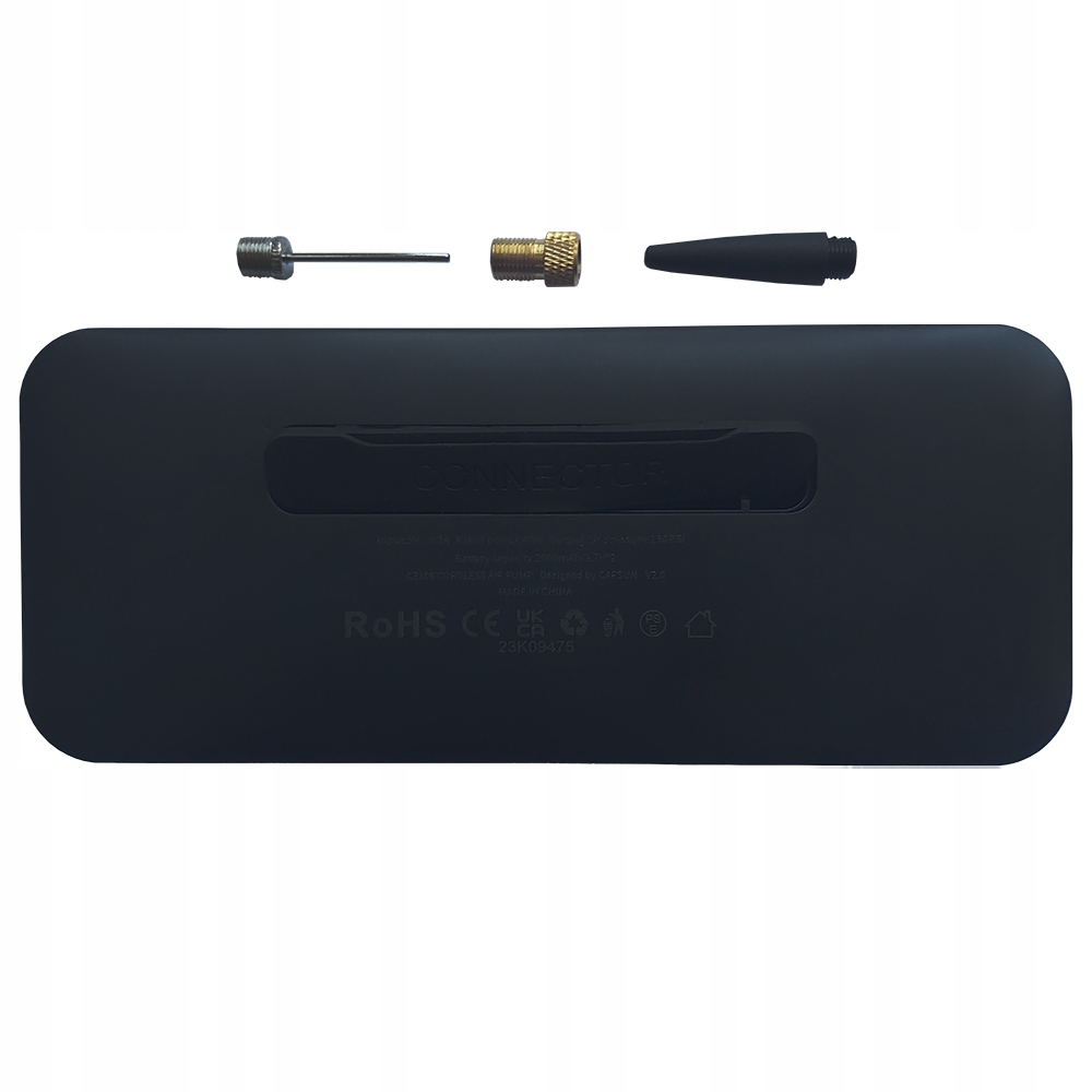 Компресор C3106 має вбудований наконечник. Просто витягніть гумову пробку на задній частині компресора, і ми маємо зручний доступ до будь -якого з кінців. Це рішення впливає на портативність набору, оскільки у нас є всі необхідні елементи під рукою.