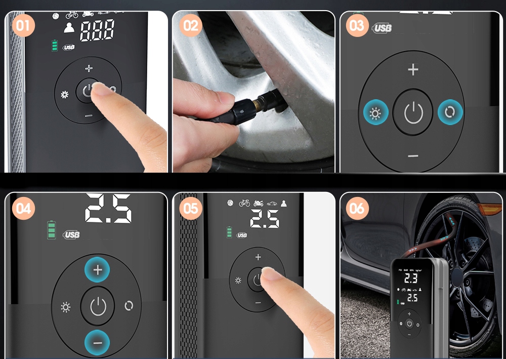 Автомобільний компресорний насос для мотоцикла бездротового велосипеда Powerbank USB
