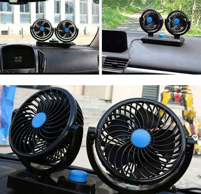 АВТОМОБІЛЬНИЙ ВЕНТИЛЯТОР 360° ДВІЙНИЙ РЕГУЛЮВАНИЙ ТИХИЙ ДЛЯ КОБІНИ 12В