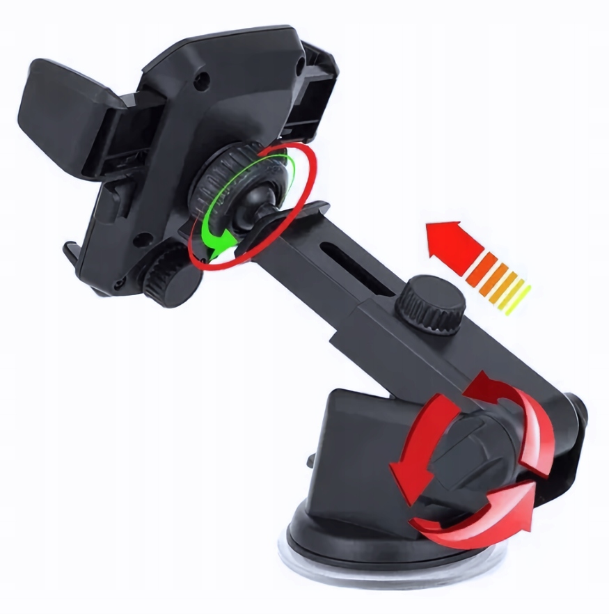 Завдяки нескінченним можливостям регулювання він має кут нахилу, що регулюється на 360 градусів, а також регульовану довжину наголів’я/рука 210-250 мм і кут 210 градусів тримач забезпечує ідеальне розташування смартфона у вашому автомобілі з урахуванням ваших індивідуальних потреб