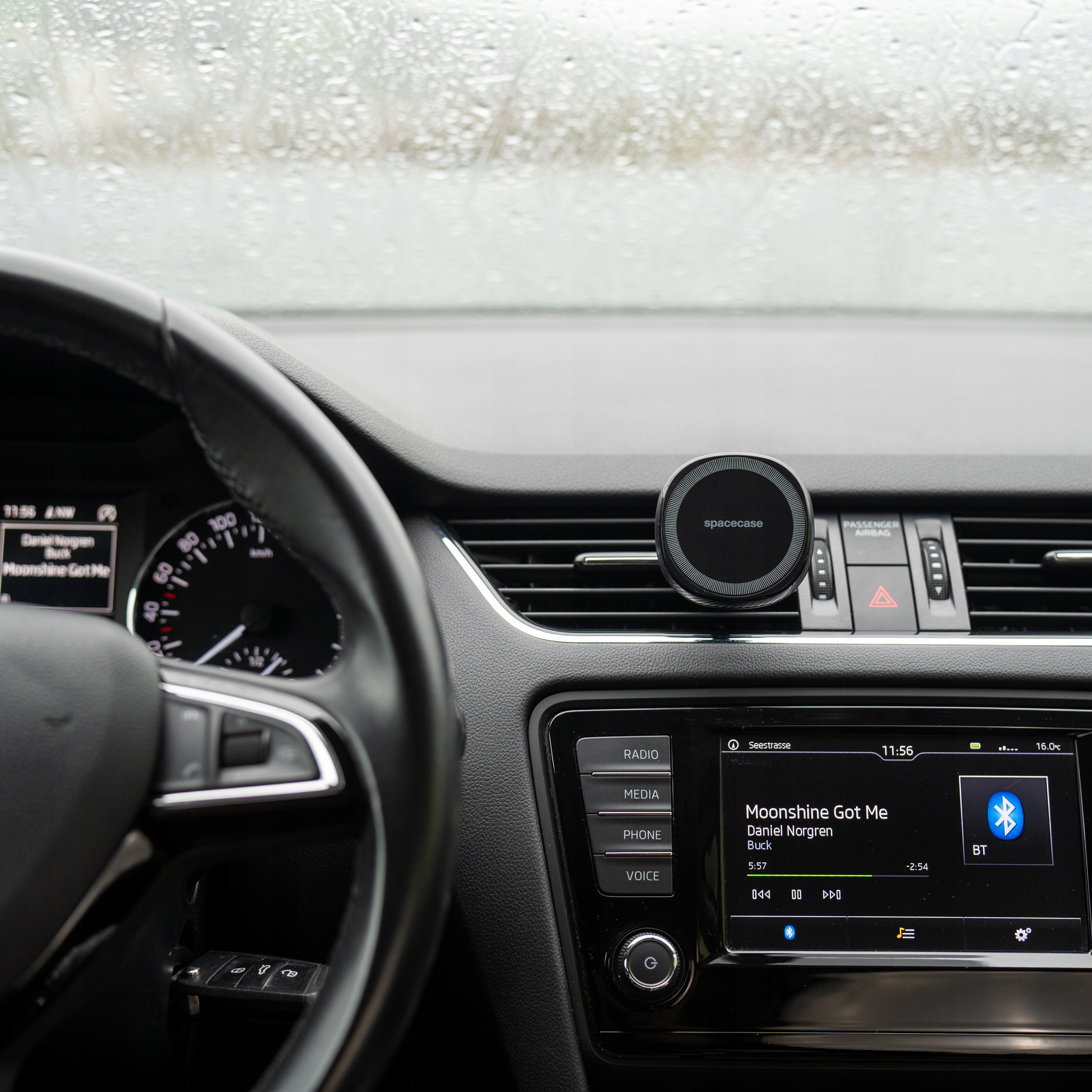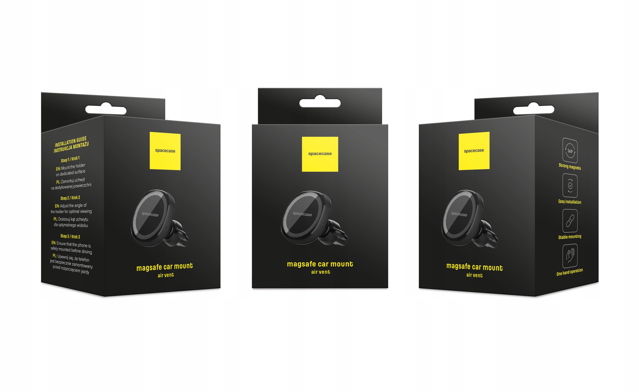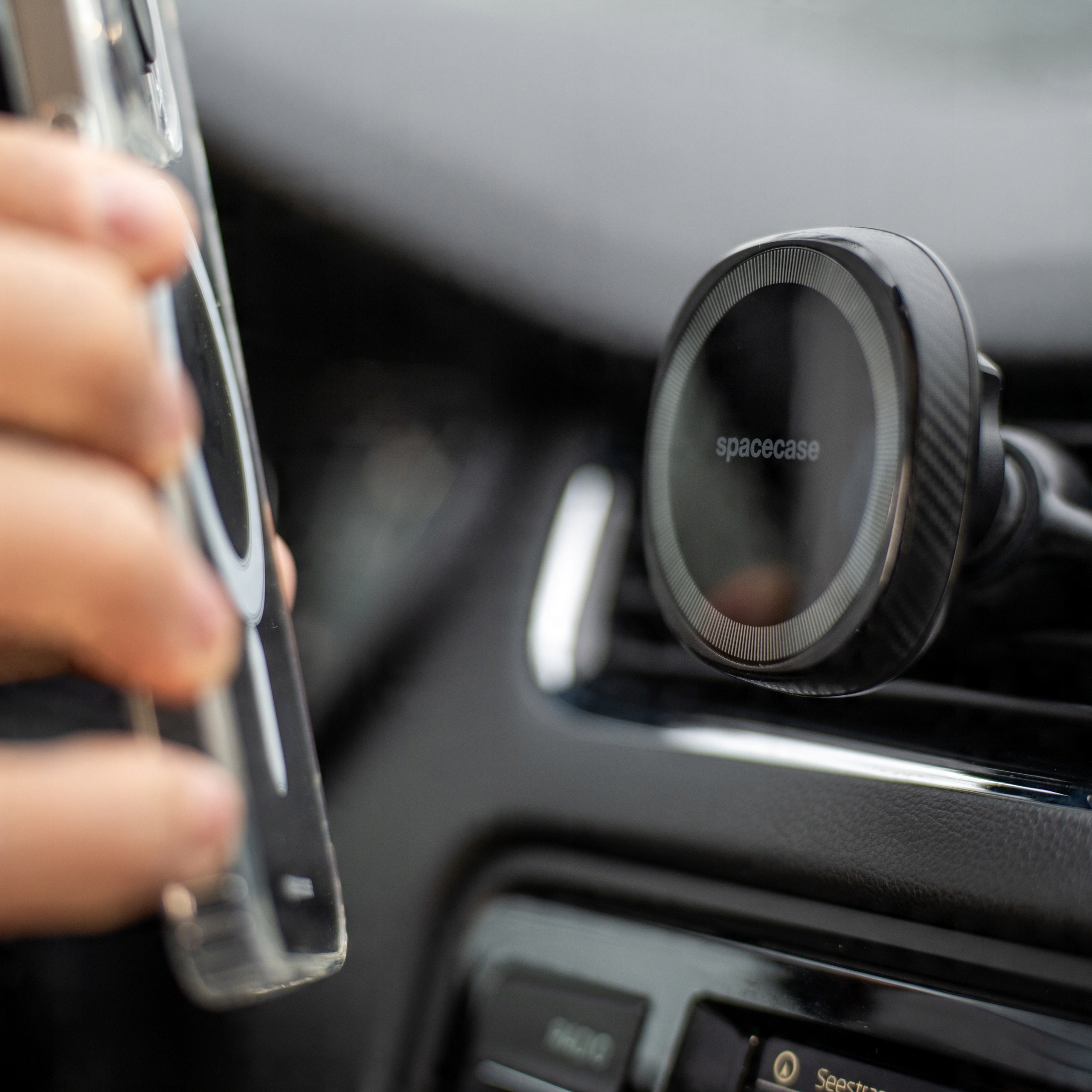Сучасний і стильниймагнітний тримач Spacecase із колекції сумісний із функцією MagSafe. Має потужний магніт і кріпильний елемент для вентиляційного отвору з обертовою головкою. У набір входить кругла пластина, присвячена MagSafe, завдяки якій ви можете використовувати тримач на будь-якому телефоні!