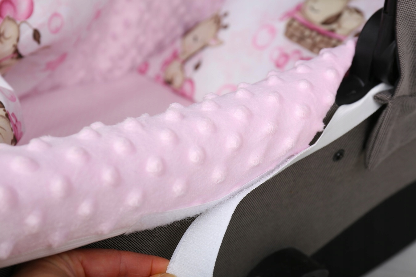 Широка липучка, довгий ремінь і виріз дозволяють ідеально адаптувати вкладиш до вашої коляски. Закріпіть вставку легко і надійно, отримуючи елегантний стиль без зав'язок, бантиків і жорстких елементів.