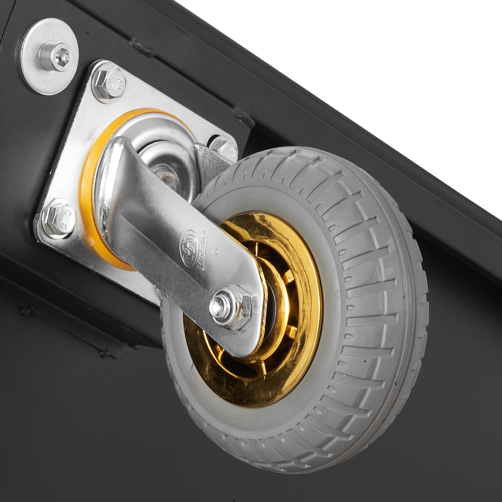 Побудована з рамкою з нержавіючої сталі товщиною 1 мм, ця багажна візка підтримує свою пишність. Міцна основа та чотири 6-дюймові гумові колеса гарантують плавний, стабільний рух навіть при повному навантаженні.