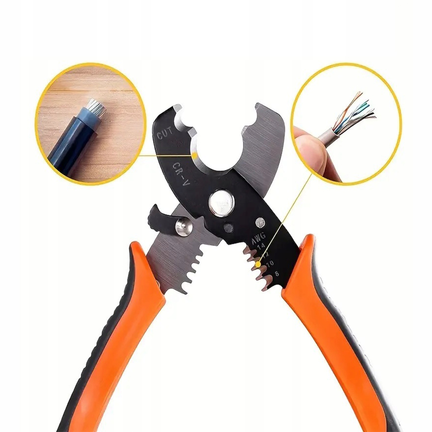 Інструмент має спеціальний механізм, що адаптується до товщини кабелю, що забезпечує точне видалення ізоляції без ризику пошкодження внутрішніх проводів. Універсальність плоскогубців дозволяє вам працювати з кабелями з перехресним розміром від 0,2 мм до 6 мм, що робить їх ідеальним рішенням для широкого спектру застосувань.