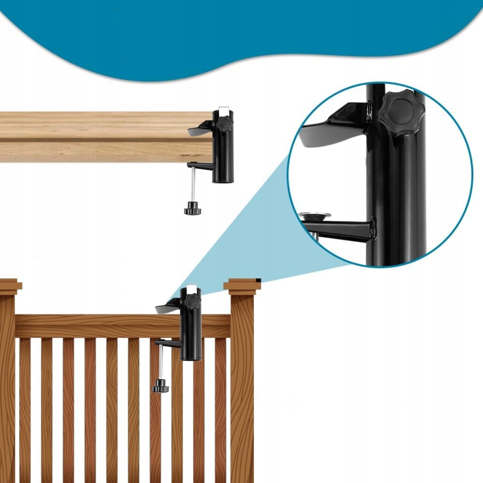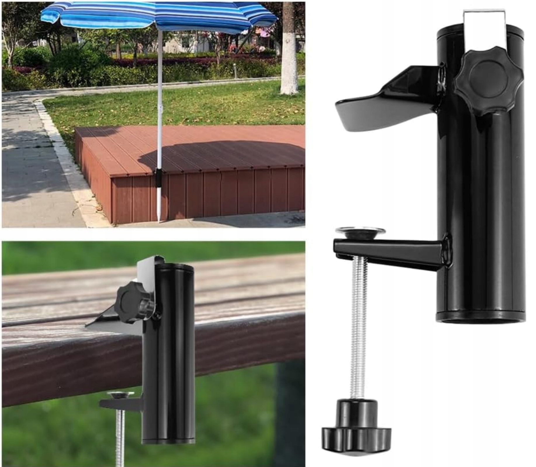 【легко встановити】 Не потрібні інструменти. Просто покладіть його на поручники, столи та підставки тощо, затягування гвинтів, щоб захистити їх. Потім покладіть парасольку на прямий циліндр затискача парасольки і нарешті затягніть гвинти.