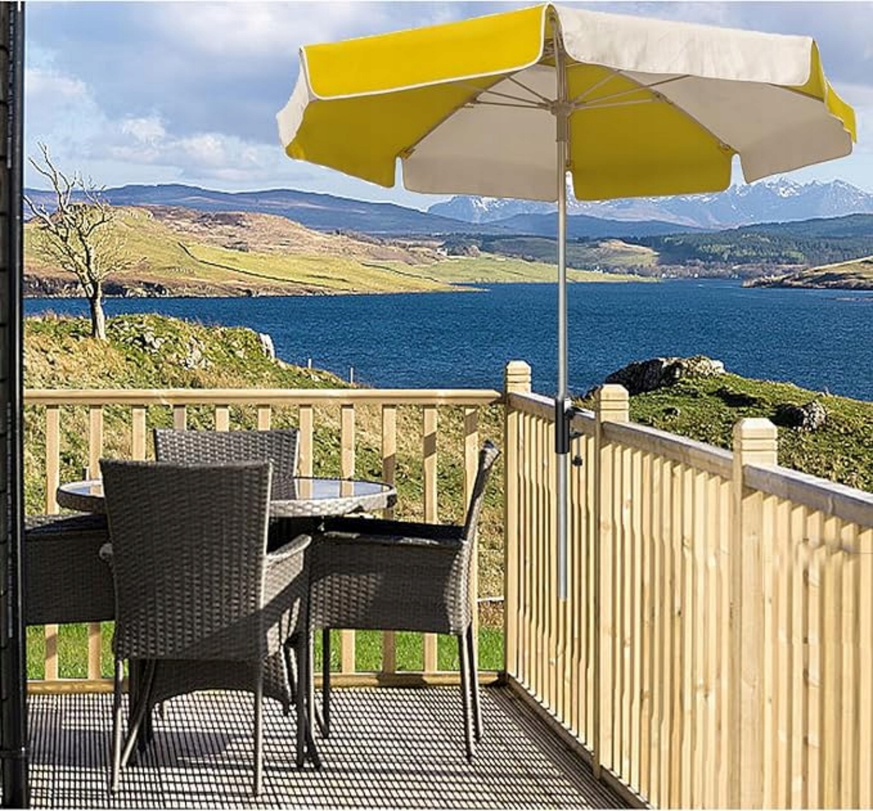 【Широко використовується】 Балкон -парасолька підходить для більшості балюстради різних діаметрів. Підставка для парасольки може бути розміщена у дворі в садах, парках, доках, терасах, курортах, пляжах і не тільки.
