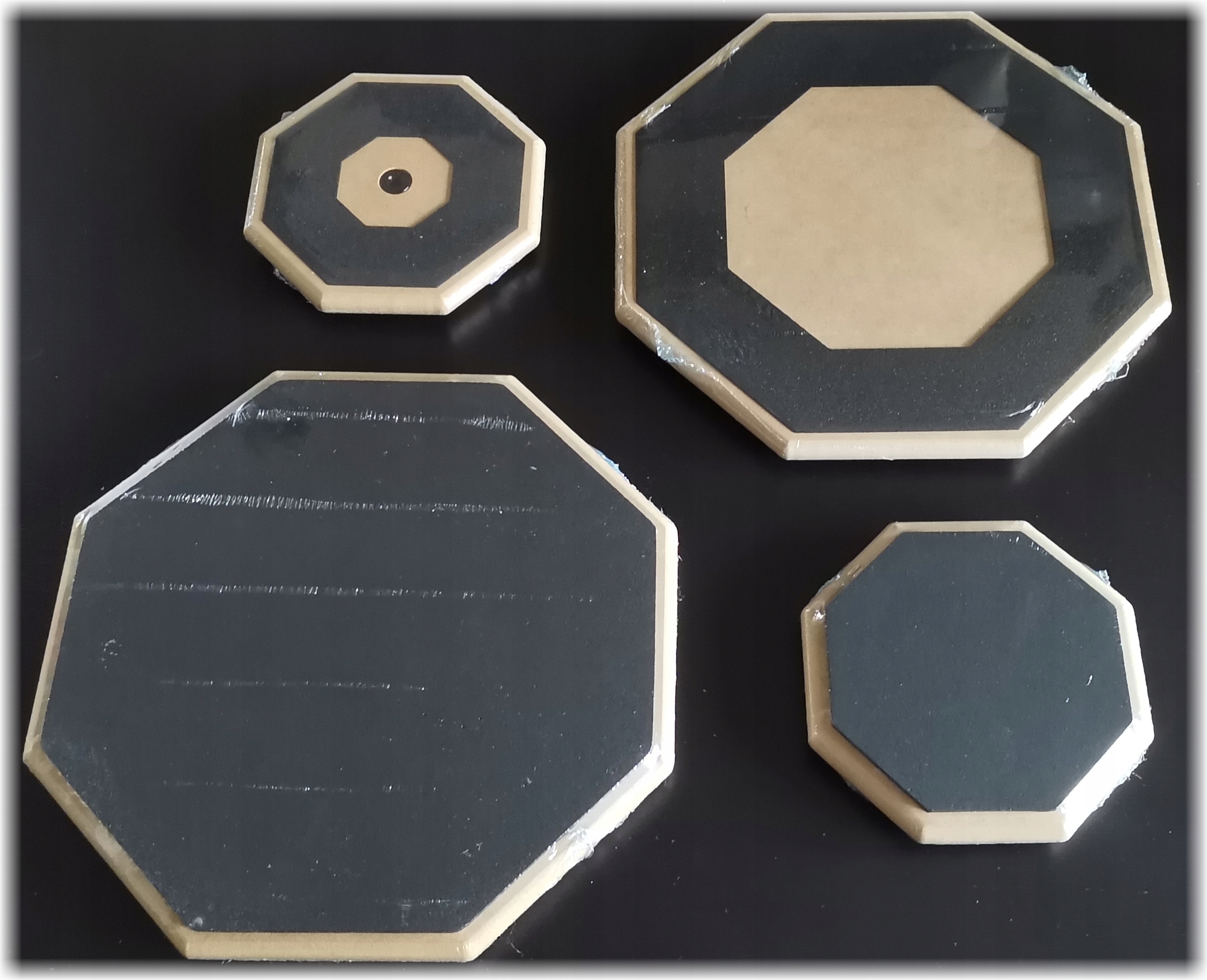 - Чорна поверхня (з тильного боку педа) - жорстка. Він краще імітує удари по тарілках (вправи на ритм хай-хет, райд)