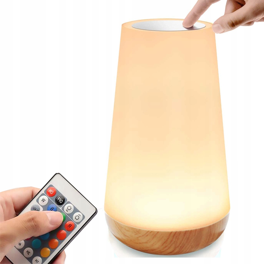 Довгий натиск спричиняє світло і вимкнено світло, ви можете легко змінити кольоровий режим, торкнувшись верхньої частини цієї ліжка. Ви також можете використовувати пульт дистанційного керування для регулювання кольору та яскравості нічної лампи.