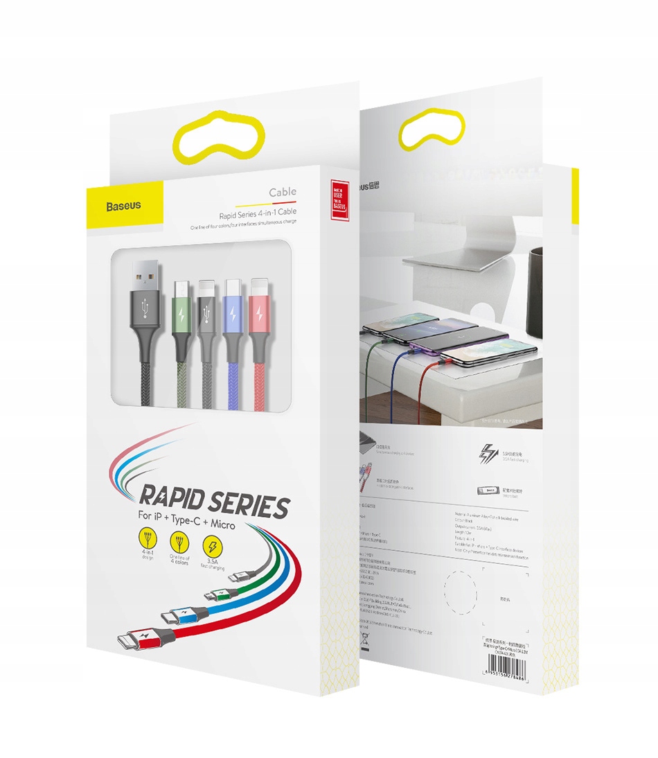 BaseUs Сильний кабель USB 4in1 2x кабель для блискавки Micro USB-C 3.5A 1,2 м