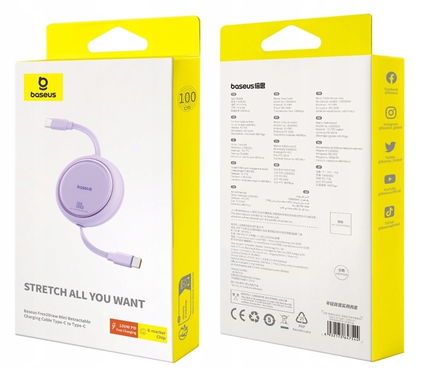 Free2Draw Mini-це інноваційний кабель USB-C для USB-C, який поширюється на 100 см, , що дозволяє швидко заряджати з живленням до 100 Вт та швидкою передачею даних до 480 Мб/с. Кабель оснащений практичним організатором, що дозволяє регулювати його довжину відповідно до потреб користувача - просто потягніть кабель з обох боків, , щоб розробити його. Для інтенсивного використання гарантує тривалий термін та безпеку. Електронний маркер Intelligent ChIP розпізнає пристрої підтримуючи швидку зарядку, керуючи струмом та напругою, щоб забезпечити відповідно безпечну зарядку. Ідеальний супутник подорожей, заощадження місця для інших щоденних цифрових аксесуарів.