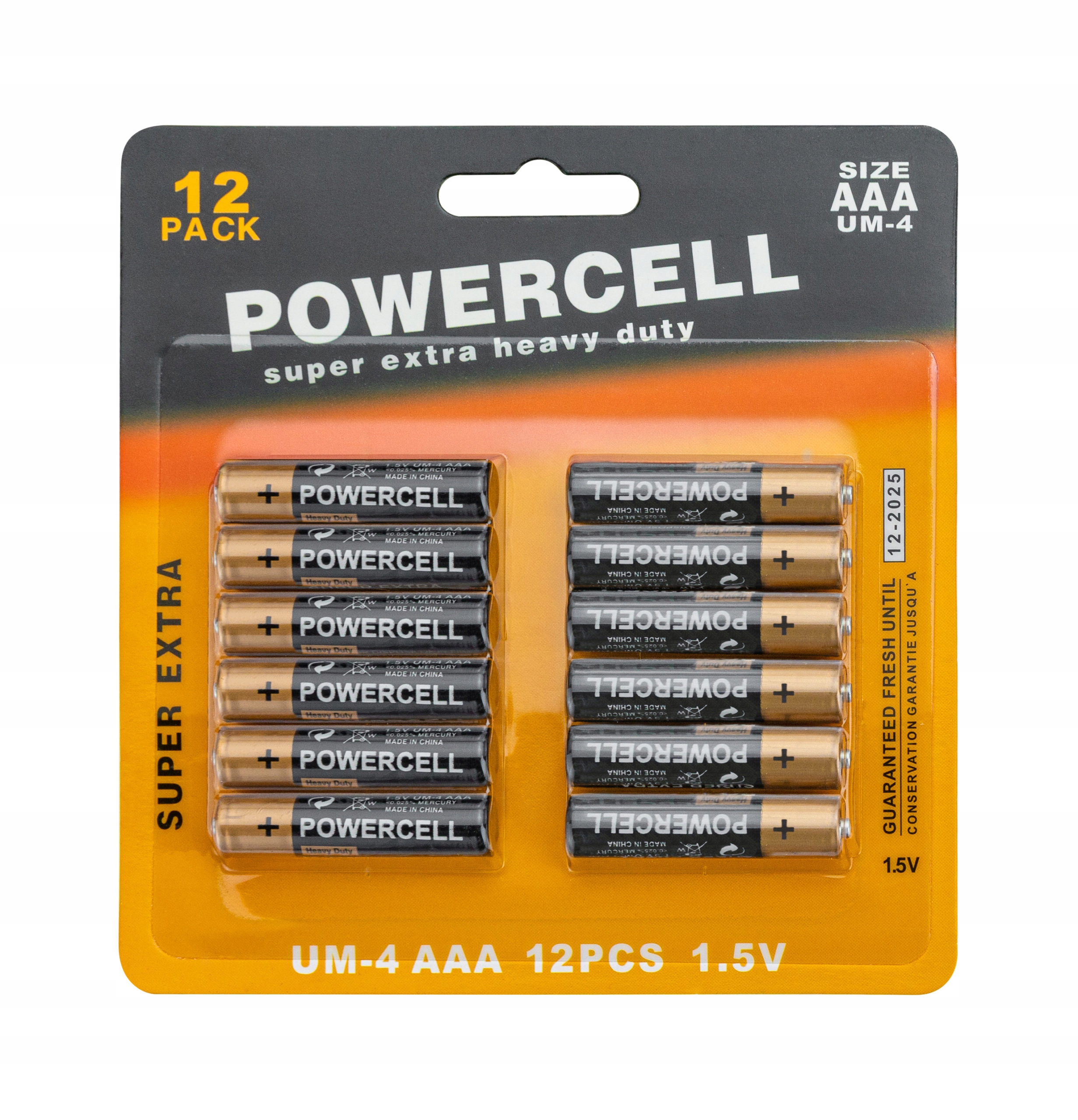 POWERCELL CARBON ZINC BATTERYS AAA (R3) 12 pcs