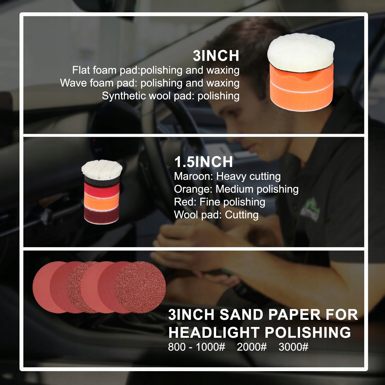 - 11 полірувальних прокладок (різні типи та розміри). штучний.