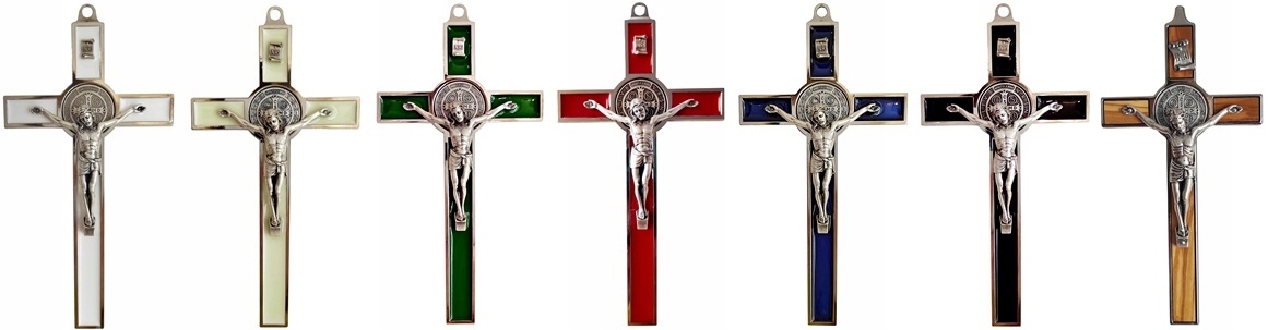 - Позаду Ісуса на передній частині медальйоні — хрест із кількома латинськими ініціалами, а на реверсі — зображення св. Бенедикт тримає в правій руці хрест, а в лівій – правило.