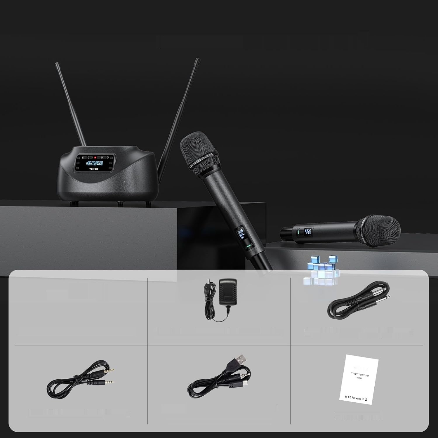 Мікрофон Tonor Sans FIL Перероблений - ідеальне рішення для любителів музики та професіоналів. Ця портативна система мікрофонів пропонує виняткову стабільність сигналу завдяки останньому чіпсеті Pro-UHF, забезпечуючи діапазон до 80 метрів без перешкод та спотворень.
