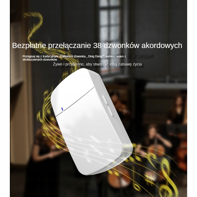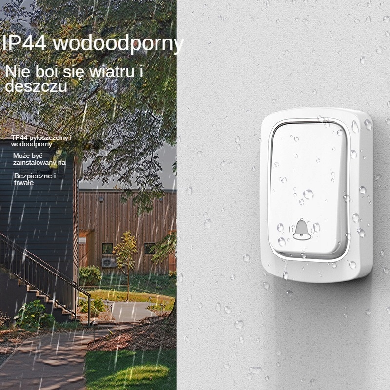 БЕЗДРОТОВИЙ ДВЕРНИЙ ДЗВОНИК БЕЗ БАТАРЕЇ, ВОДОСТІЙКИЙ IP44, ВЕЛИКИЙ ДІАПАЗОН