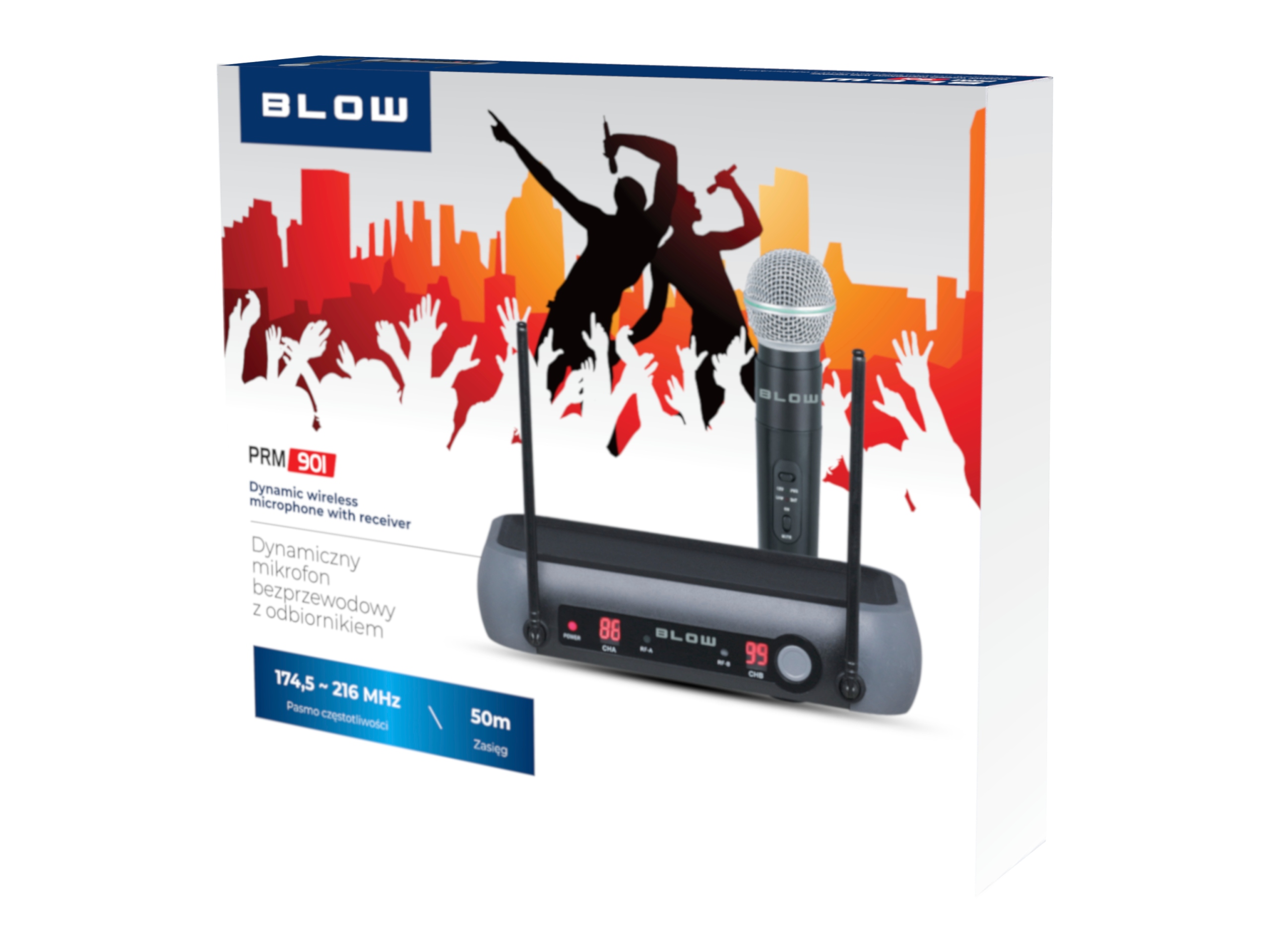 Професійний набір високого класу, що складається з бездротового мікрофона та приймача Blow, призначений як для професійного, так і для аматорського використання. Підключення та використання не повинно бути серйозною проблемою. Максимальна відстань між приймачем і мікрофоном становить 50 метрів.
