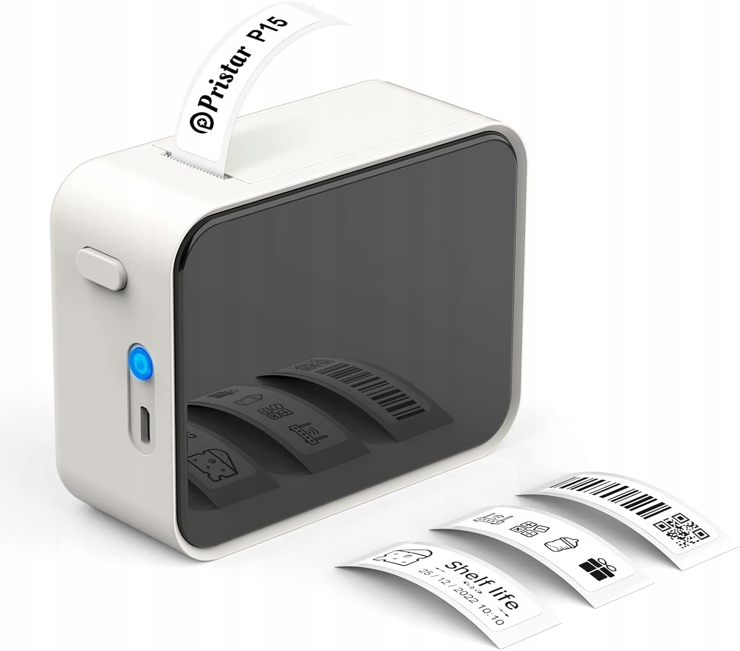 Термопринтер етикеток P15 використовує технологію термічного друку, без чорнила та тонера для друку етикеток, використовує терморозривний етикетковий папір, постачається з різаком, без сухої батареї, більш екологічний.