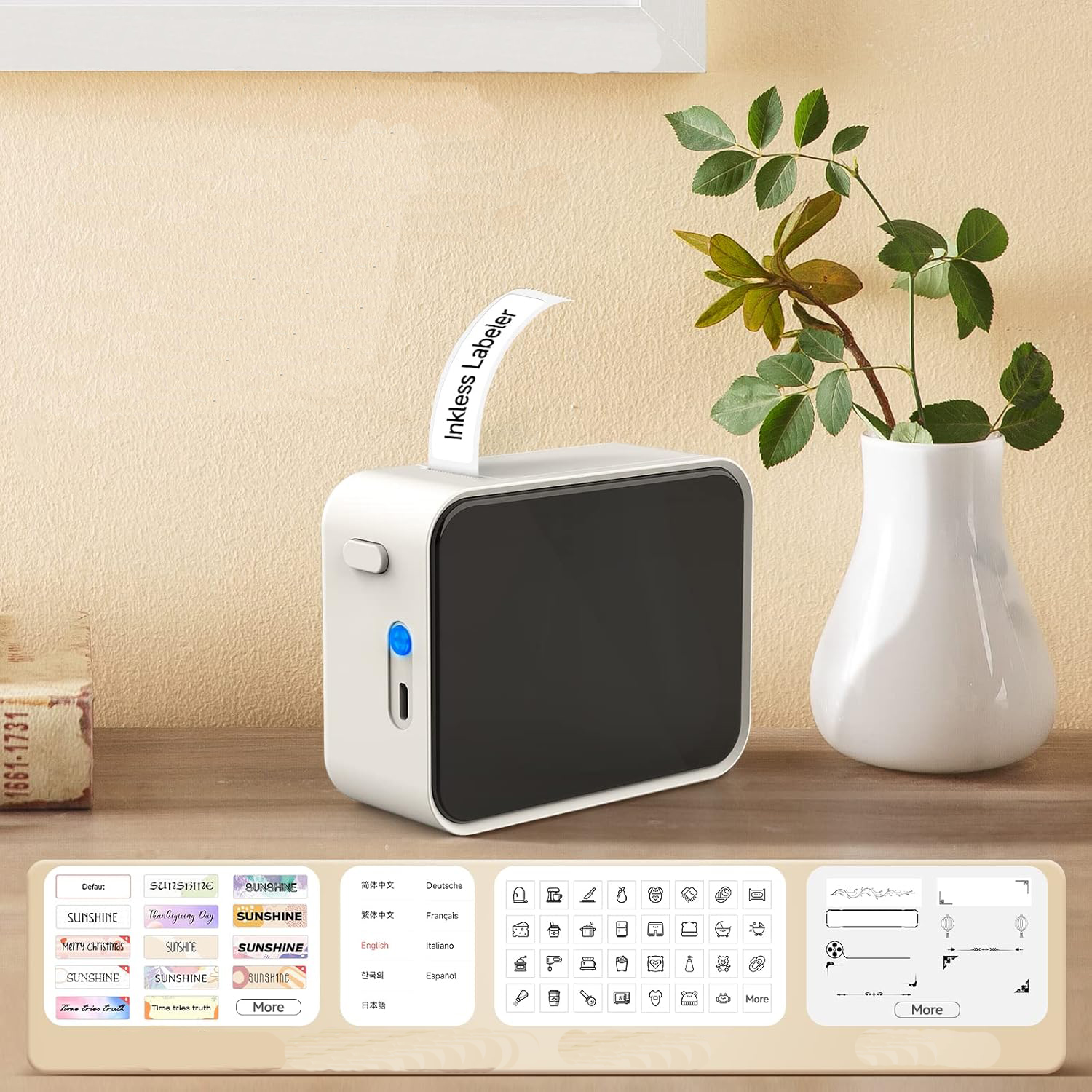 Самоклеючий акумуляторний принтер етикеток P15 Bluetooth, принтер етикеток для iOS та Android, підходить для дому, школи, офісу, білий