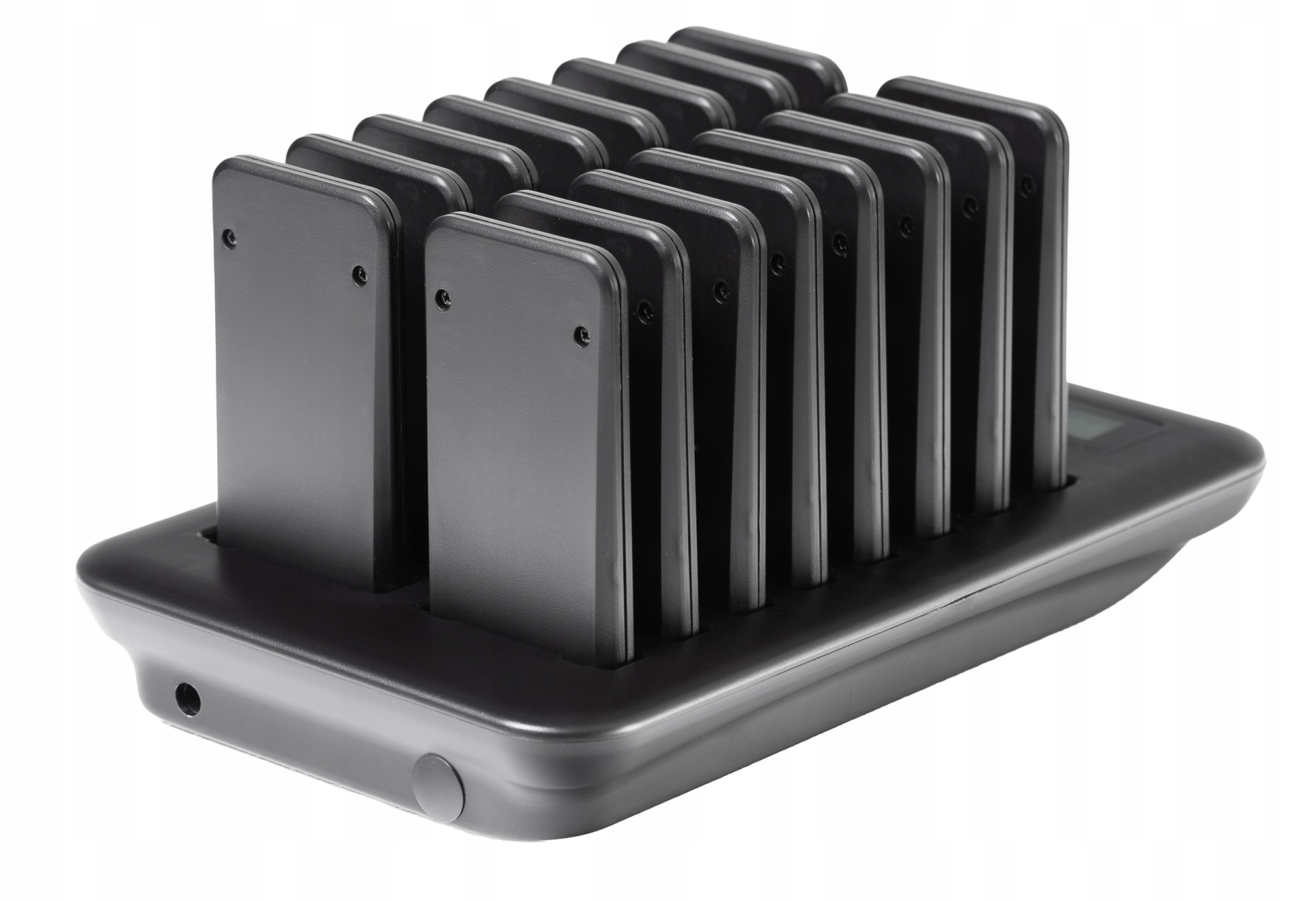 ✅ Док-станція служить зарядним пристроєм, який дозволяє заряджати всі пейджери на той самий час. Процес виклику здійснюється за допомогою сенсорної клавіатури, розташованої в передній частині корпусу. Просто наберіть відповідний номер і натисніть «виклик»