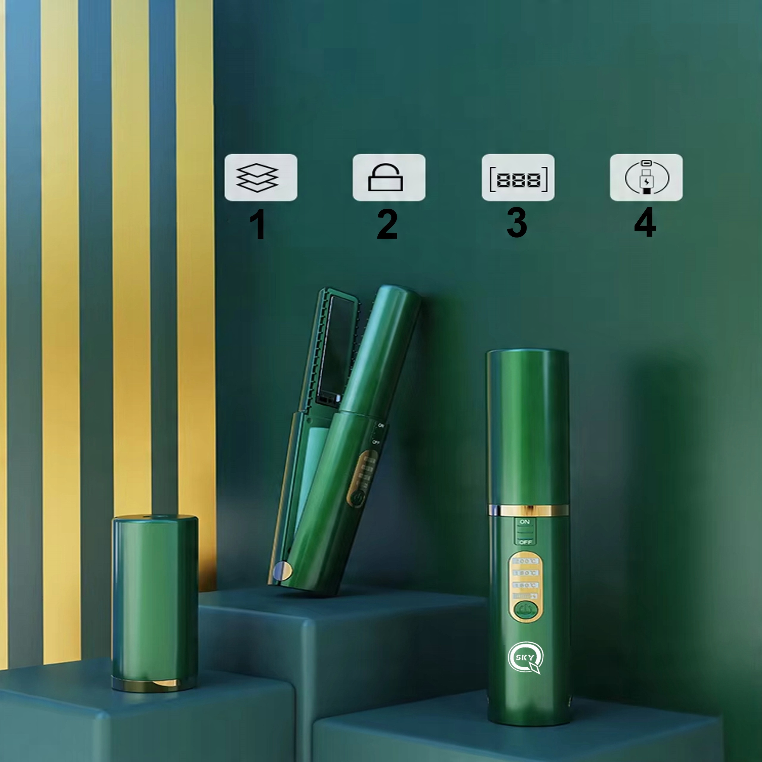 компактний бездротовий випрямляч із функцією іонізації , а світлодіодний індикатор - незамінний пристрій для повсякденного волосся. швидке опалення, три температурні діапазони та зарядка USB роблять його ідеальним вибором для дому та подорожей.